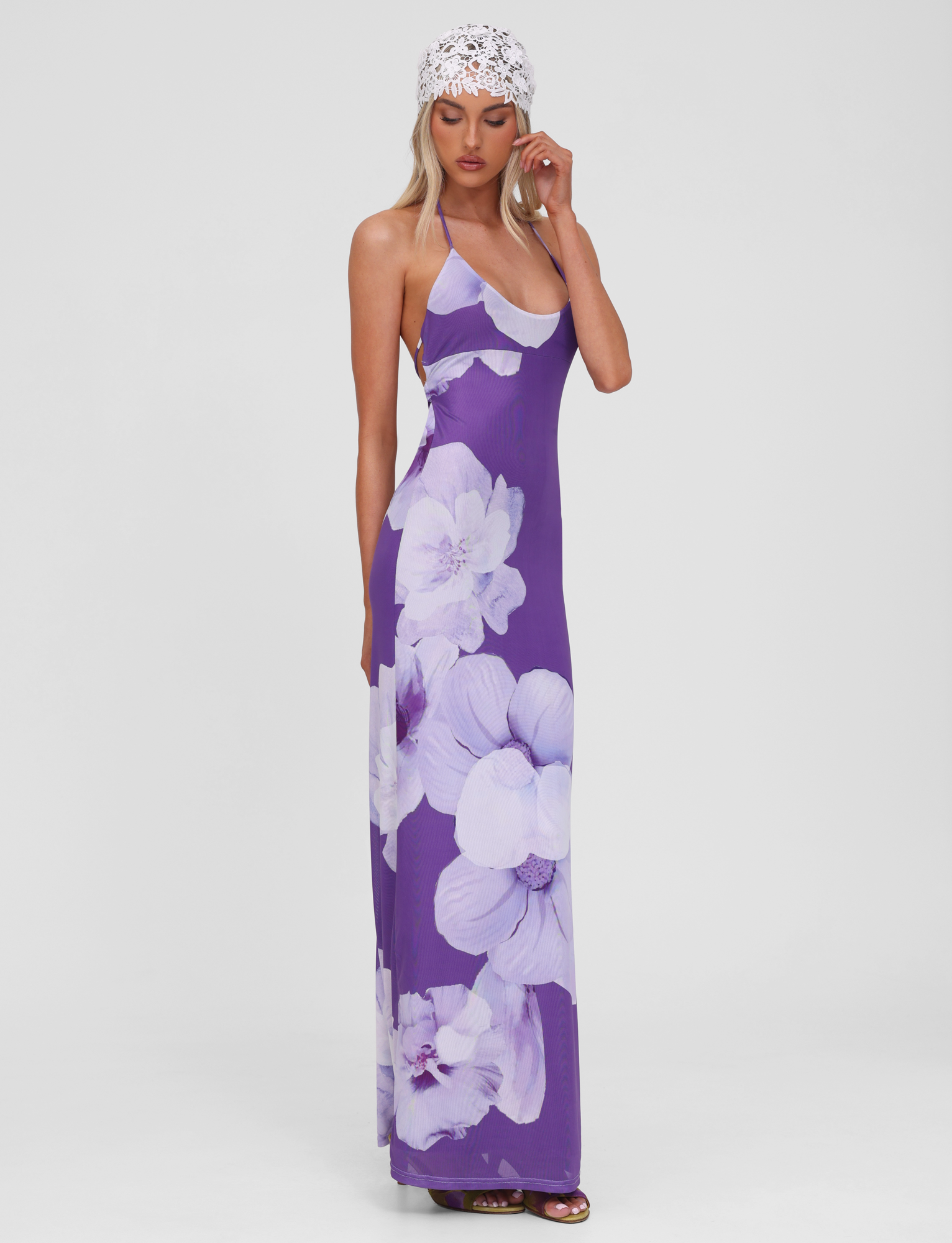NOUR MESH MAXI DRESS - PURPLE MACRO FLORAL